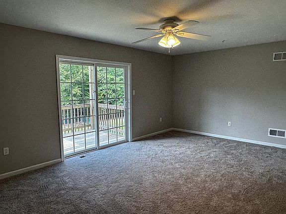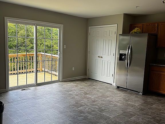 This home has 2 decks and an outdoor patio that backs to woods. The side windows add extra light to the main living area. No more dragging laundry to the basement because the stacked washer and dryer are on the top floor with the bedrooms.
