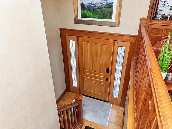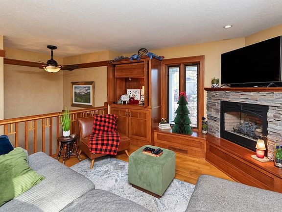 Two additional bedrooms are located on the main floor, accompanied by a full bath that boasts heated floors, a jet tub, and a skylight for an airy feel. The walkout finished basement expands your living space with a generous family room featuring a cozy gas stove. For added convenience, the laundry/utility area includes a half bath and wash sink.