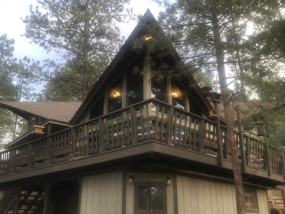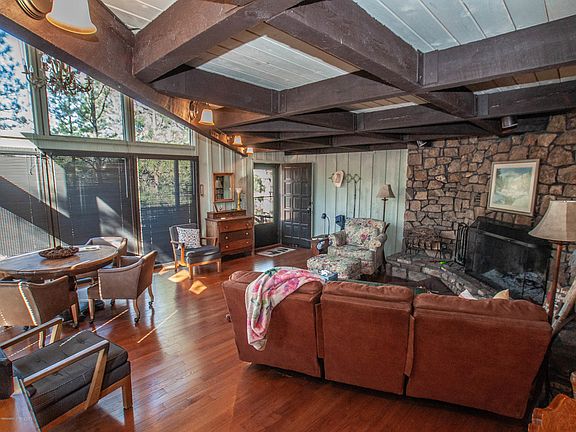 CLASSY MOUNTAIN STYLE HOME! Pamper yourself in this remodeled Rustic. A parade of features, including rock fireplace and hardwood flooring. 4 bedrooms, 3 baths. The corner lot with circular drive gives this home additional grace and charm. A really delightful atmosphere is provided by the vaulted ceilings. Come see all the other advantages offered, such as family room, game room, ceiling fans and large view deck. Space galore. timeless style! Refrigerated air conditioning and furnished.