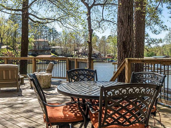 Tucked away in a peaceful cove on Lake Hamilton, this exceptional lakefront home offers the perfect blend of comfort, privacy, and income-generating potential. Situated on just under an acre, the property has operated as a highly successful short-term rental and sleeps up to 18 guests comfortably. The home is being sold fully furnished, featuring stylish and durable furnishings, including many pieces from Pottery Barn. The main level features an open-concept kitchen, dining, living, and TV area—ideal for gathering and entertaining—with a private bedroom and a separate bunk room thoughtfully designed for kids. Upstairs, four additional bedrooms provide ample space for guests, including a spacious primary suite complete with a spa-like bathroom and a sunroom retreat featuring a soaking tub. Outside, the property truly shines with a wraparound deck offering tranquil views of the cove, along with a hot tub, outdoor shower, fire pit, and both a covered dock with electrical and a separate swimming dock. There's also room for expansion, including space for an RV with electrical hookups and enough land to accommodate an additional home. Located just outside Hot Springs city limits, the property is exempt from city short-term rental licensing—making it an even more attractive option for investors.