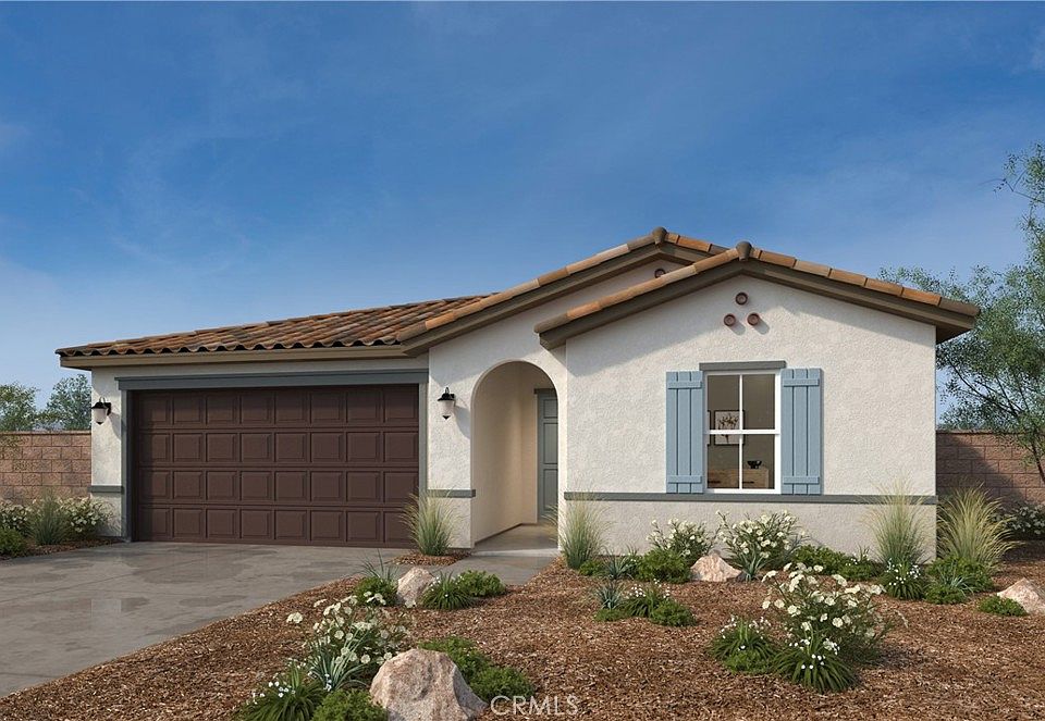 Brand new beautiful Amelia community in Menifee. Single story 3-bedroom 2 bath, Spanish style open floor plan home with a spacious great room, 9 ft. ceilings, included Kitchen Island, large primary bedroom and bath with walk in shower. Energy effecient hybrid water heater, whirlpool stove, oven, microwave and dishwasher. All electric home. Kitchen includes white cabinets, granite counter tops with a 6 inch matching backsplash. You can still personalize everything in this home. Community will surround a non-recreational community lake with walking trails for the residents. There will also be a community park with open turf area, bbq's, shade structures, basketball court and tot lot as well as a community center with onsite pool., spa, park and clubhouse. Located near Diamond Lake Community Park. Minutes to shopping, dining and entertainment.