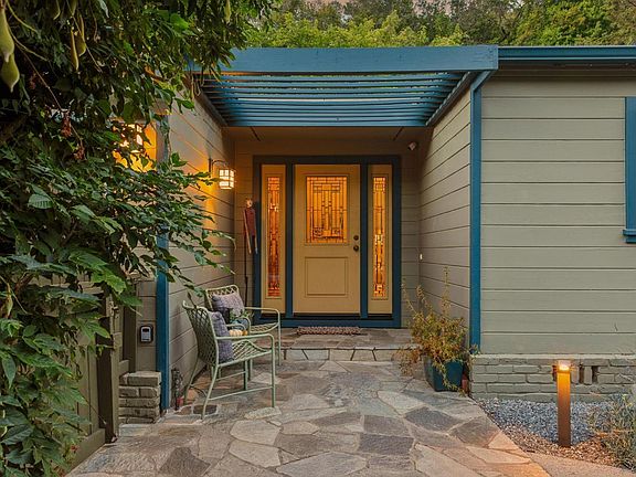 Thoughtfully expanded and beautifully updated, this 5-bedroom, 2-bath mid-century home offers 2,152 sq. ft. in one of Fairfax's most welcoming neighborhoods. Just steps from the library, dining, top schools, and miles of trails, it's where community and nature meet vibrant yet serene. Designed by a local architect, the home balances modern comfort with original charm. The open-plan kitchen, dining, and living areas flow seamlessly, filled with natural light from skylights, dual-pane windows, and sliding doors. Oak floors and clean design evoke a Northern European vibe warm, timeless, and inviting. Downstairs offers three bedrooms and a bath; upstairs adds more bedrooms and flexibility for family or guests. Unique touches include a sauna with pebble-floor shower, a cozy nook, and patios and terraces for dining and relaxation. The outdoors shine with three newly landscaped areas, retaining walls, drought-tolerant gardens, and Wi-Fi-connected lighting and irrigation alive with hummingbirds and butterflies.Solar, a tankless water heater, Marvin windows, & enhanced insulation make this home efficient & sustainable. In the flats near town, neighbors gather for block parties while nature beckons just outside your door. Experience the comfort of home & the spirit of Fairfax.