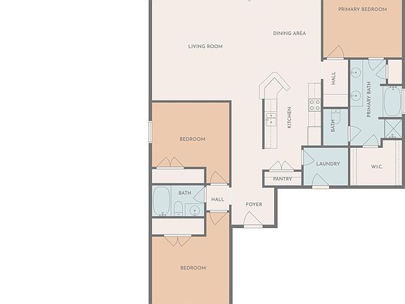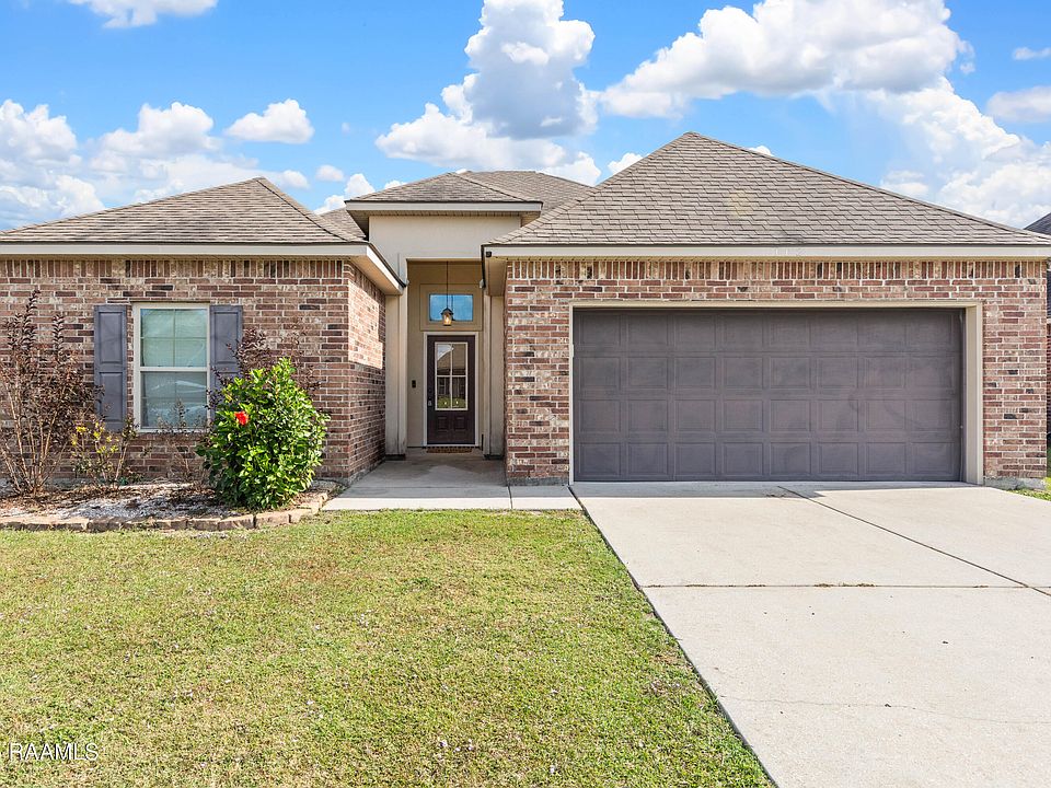 Welcome to this well-designed 3-bedroom, 2-bath home featuring an open layout and great natural light throughout. The spacious living room flows into a large dining area and a kitchen with an island, pantry, and plenty of cabinet space. The split floor plan offers a private primary suite complete with a double-sink vanity, soaking tub, separate shower, and walk-in closet. Two additional bedrooms share a full hall bath near the foyer. Outside, the home features a brick exterior, covered entry, and a two-car garage. This home is move-in ready and easy to maintain--schedule your showing today.