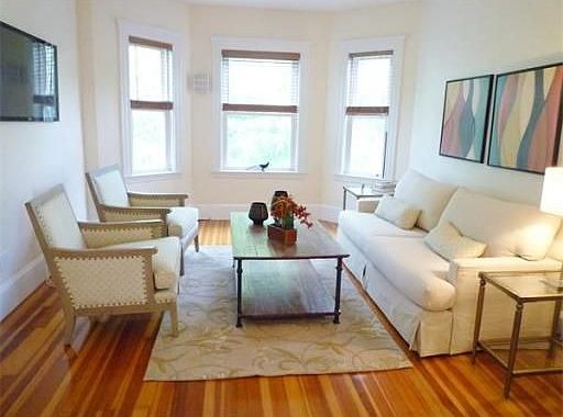 Bright & spacious top floor 2 bed condo w/ an elegant renovated kitchen including granite counters, cherry cabinets & designer appliances. There are hardwood floors throughout, an updated tile bath, formal dining room & master bedroom w/ walk-in California closet. Other notable features include, one assigned parking, front & rear decks, large private storage, built-in speaker system & central A/C. Conveniently located on a quiet tree lined street just 2 blocks from Coolidge Corner shops & the T.