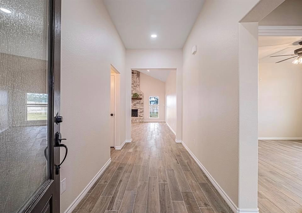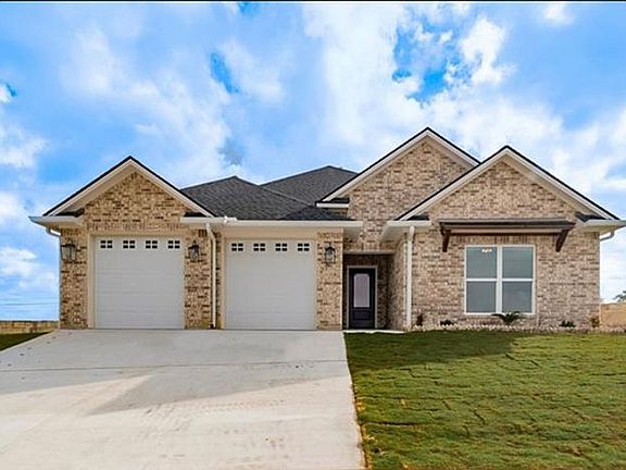 Roam home to this 1,795 sq ft home in Buffalo Ridge, the latest neighborhood in Giddings overlooking the middle and high schools. Custom-built touches highlight the 3 bedrooms, 2 bathrooms, and living room with vaulted ceiling, exposed beam, and a feature fireplace. The home boasts an expansive granite kitchen island anchoring the open-concept living/dining/kitchen area with beautiful modern fixtures, recessed lighting, and large windows. The secluded master suite has a beautifully-stained barn door to the ensuite bathroom with split sinks and two doors to a dream walk-in closet. Enjoy the view of the lush Bermuda grass and covered back patio with ceiling fan and gas port for grilling.