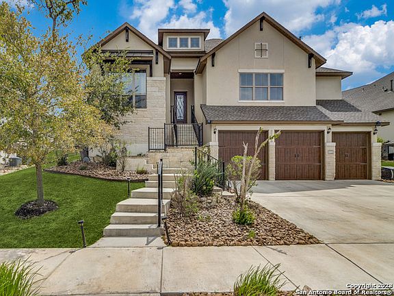 Located in the resort-style Esperanza community, this stunning home offers over 4,000 square feet of living space, providing the best value per square foot. Built in 2017, this home offers gorgeous views from the oversized windows, 4 spacious bedrooms, 4 bathrooms, a private office, and an open concept kitchen complete with a suite of stainless steel appliances, all meticulously designed and maintained for added comfort and luxury. You are welcomed in with soaring ceilings and wood-like tile flooring throughout the first floor. The chef's inspired kitchen offers an extensive island with overhead pendant lights, plenty of storage space, and convenient access to the covered patio. Retreat to the primary suite and enjoy a spa-like bathroom complete with a soaking tub, dual vanities, generously sized walk-in closets, and vaulted ceilings adding to the opulence of this space. With an additional living room, media room, three secondary bedrooms, and a three car garage, this home offers unbeatable space to make this home your own. From the lazy river, fitness center, dog park, and over 20 miles of scenic trails, the residents of Esperanza are able to enjoy countless amenities! With its prime location in highly-sought after Boerne ISD, this home allows you to enjoy one-of-a-kind luxury with quick access to city life. Schedule a showing today and be one step closer to making this home your own!