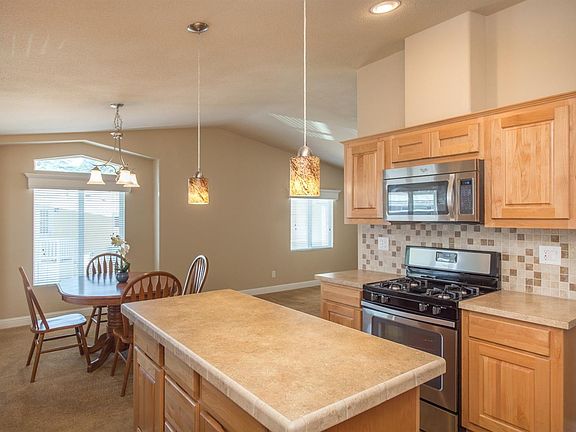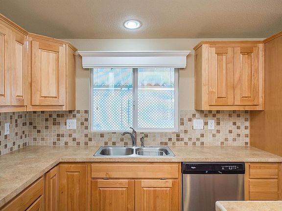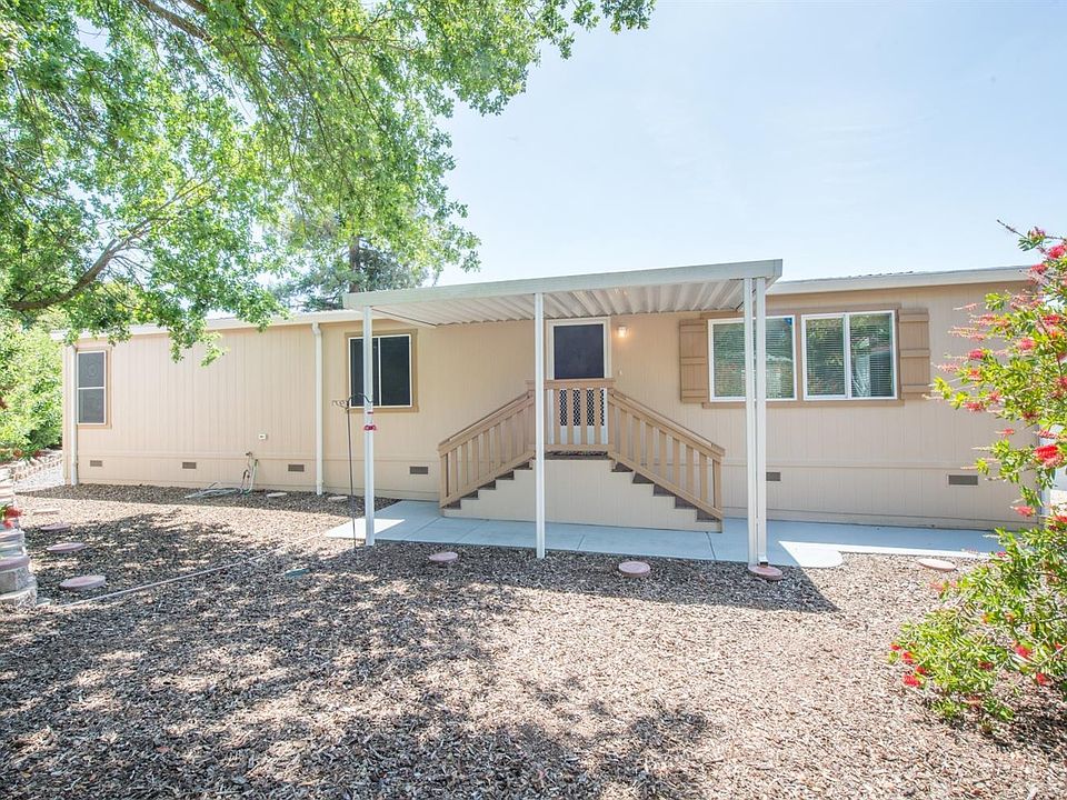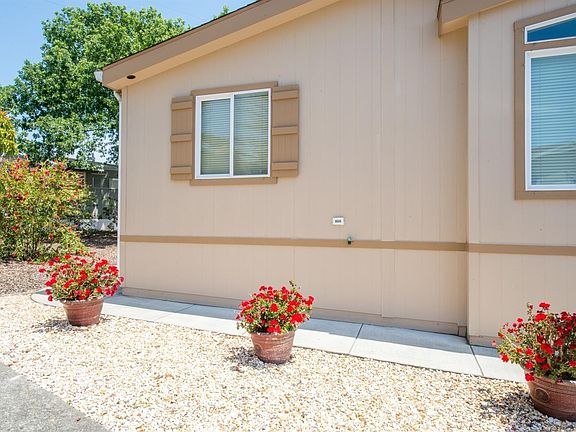 Lightly lived in and very clean 3 bedroom, 2 bathroom 1500 sq ft Skyline home. Tucked away at the back of the park & away from Hwy 12, this home sits on one of the larger spaces in the park. Light, bright, spacious and ready for a new owner to make it a home again. 10x12 Tuff Shed with plenty of room for storage.
