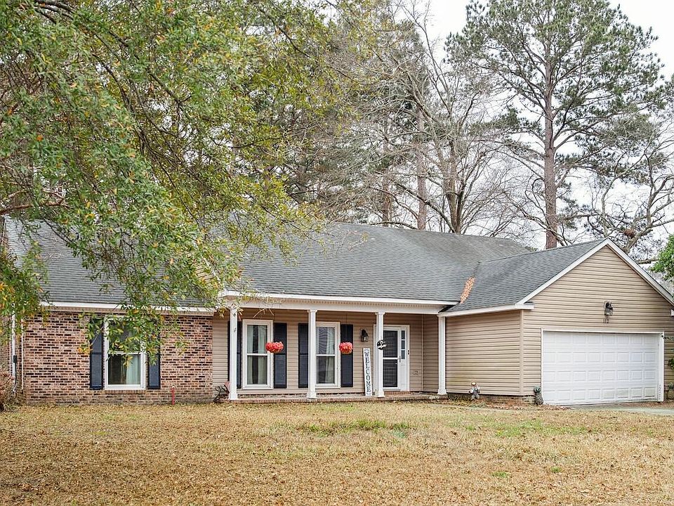 Move-in ready in Crowfield Plantation! This inviting single-story home features 3 bedrooms, 2 baths, and a layout that blends open living with private comfort. The updated kitchen offers modern finishes, while a formal dining room and vaulted living area with wood-burning fireplace create perfect spaces for gathering. The primary suite provides a private retreat, with versatile secondary bedrooms for guests, office, or hobbies. Step outside to a fenced backyard with patio, plus a 2-car garage for added convenience. Crowfield residents enjoy pools, parks, trails, and a community golf course--all with easy access to St. James Avenue, connecting you quickly to I-26, shopping, dining, and Charleston destinations.