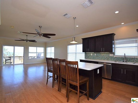 Beautiful Waterview multi-level home overlooking Lavaca Bay. Home has 2 car garage with living area, kitchen and master bedroom on second level with guest rooms and bath on third level. Home has been updated with wood flooring, granite countertops throughout. Master bedroom has large walk in closet and walk in shower. Home also comes with extra lot next door. If your looking for a low maintenance home this might be it.