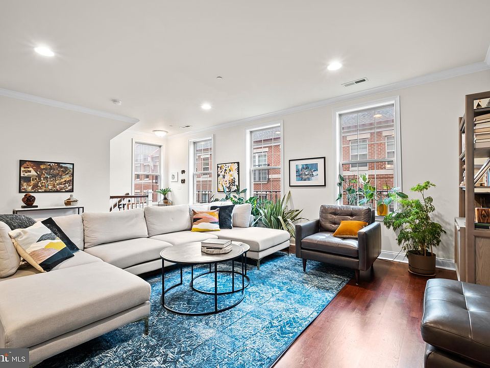 Nestled along a picturesque, tree-lined walkway in Naval Square- Philadelphia’s premier gated community- 112 Commodore Ct unveils a truly exceptional 23-foot-wide bi-level townhome just a short walk to both Rittenhouse Square & University City. This sun-drenched end unit features 8 extra windows, 3 spacious bedrooms, 2.5 baths, a private terrace and the ultimate convenience of an attached one-car garage. Step into a bright and inviting open-concept living and dining area, beautifully enhanced with rich hardwood floors, two additional windows that fill the space with natural light, and an abundance of upgraded recessed lighting. The chef-inspired kitchen is a true showpiece, boasting elegant shaker-style cherry cabinetry, a tumbled marble backsplash, sleek granite countertops, and a full-size pantry. A premium stainless steel appliance suite includes a four-door Samsung refrigerator, Bosch dishwasher, stainless range, and a newer microwave — perfectly blending style and functionality. The adjacent family room space opens onto a full-length private terrace—perfect for relaxing or entertaining. Upstairs, retreat to the elegant primary suite, a serene haven featuring soaring vaulted ceilings, plush carpeting, and an expansive walk-in closet outfitted with custom California Closet built-ins. The spa-inspired en-suite bath offers dual vanities with granite countertops, a relaxing soaking tub, and a separate glass-enclosed shower. Two additional sun-drenched bedrooms—one also showcasing a second custom California Closet walk-in—share a beautifully appointed hall bath. A convenient laundry closet with washer and dryer and even more built-in storage completes this thoughtfully designed upper level. Additional highlights include a convenient attached garage with built-in storage, plus a private hallway leading to the garage featuring custom built-ins—perfect for organizing everyday essentials. There’s also ample space to store bikes, strollers, and more, blending thoughtful design with effortless functionality. Enjoy peace of mind knowing that all major mechanical systems have been recently updated, including the lower-level HVAC in 2025, the upper-level HVAC in 2023, and the hot water heater in 2022. Countless lighting upgrades throughout ( 5K). Enjoy the ease of having the heated outdoor pool & state-of-the-art fitness center less than a minute walk from your building and the concierge close by. You’ll also love the convenience of having an Amazon Locker station right in the community. The dramatic community room in Biddle Hall rotunda is perfect to reserve for private parties. Enjoy the outdoor amenities of the 20-acre park-like setting: including picnic areas, well-kept gardens & mature landscaping. With a gated entry and on-site visitor parking, convenience and security are paramount. Very close proximity to South Street Bridge, UPenn (0.7 mi), CHOP, HUP & Drexel, Rittenhouse (0.9 mi) & Fitler Square. Fantastic restaurants and cafes, such as Rival Bros Coffee, Friday Saturday Sunday (James Beard Winner), Illata BYOB, Pub & Kitchen, Southgate, Sabrina's & Loco Pez, are all just steps outside the gates. The new Heirloom Market by Giant and South Square Market are only a block away. Directly out the back gate you will find easy access to the Schuylkill River Park, including the Award Winning Trail & Boardwalk, Markward playground, Tennis Courts & dog park! Naval Square is a pet friendly community allowing up to 2 pets with no weight restrictions. Don't miss this rare opportunity to own a piece of urban paradise in one of Philadelphia's most sought-after neighborhoods! There is a special assessment with an additional monthly charge of $413.88 until Dec 2026. This is not reflected in the monthly condo fee of $740.16. If possible, seller prefers mid- December settlement with rent back until January 11th 2025.