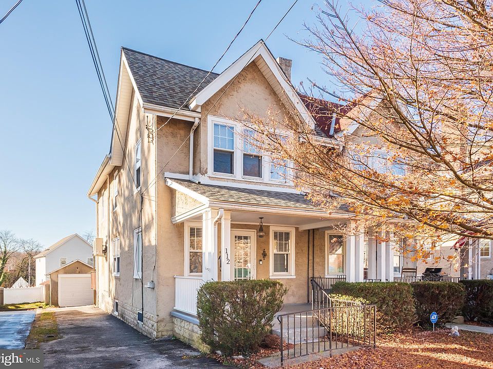 Welcome to 112 Conestoga Road, a solidly built twin home in the heart of Wayne with old-world charm and gleaming hardwood floors. The home features a covered front porch, one-car garage, and a fenced rear yard. The formal living room has a brick gas burning fireplace and ceiling fan. The formal dining room is ideal for family meals and holiday gatherings. The updated kitchen offers ample cabinet and counter space, stainless steel appliances, and access to a spacious deck overlooking the backyard. The deck is the ideal spot for relaxing, entertaining, grilling and dining al fresco. Upstairs are three bedrooms served by a hall bathroom. The semi-finished basement includes laundry facilities, a full bathroom, a storage room, and access to the rear yard, while a walk-up attic provides additional storage. Located in the top-ranked Radnor School District and close to shops, trains, restaurants, and the Wayne Farmer’s Market, this is a great opportunity to move from renting to owning. This is the one, welcome home!