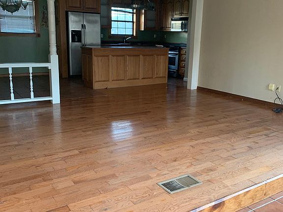 Located on 3 private acres (Half wooded and half open lawn) with flower beds waiting for new occupants personal touch. Beautiful open and modern kitchen with oak cabinetry. New hardwood floors. 3 bed rooms with 2 bathrooms/living room/ dining room/ kitchen/ and laundry room on main floor. Stairs leading down to finished half basement. House has been empty for 1 year and has wear and tear from last renter and needing general upkeep. Home is in good condition with great potential being offered to the right couple able to give it the necessary TLC it needs and reflected in the rental price. An excellent home value offered to qualified applicants with proven dependability and willing to sign a 1 year lease. First and Last months rent plus deposit required for move in. Owners would also prefer rent to be collected monthly by automatic bank draft. Please contact owner for more details and how to apply. Open house for showing 9/20/2015 Sunday 2-4 only.