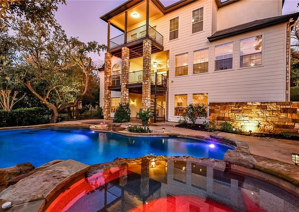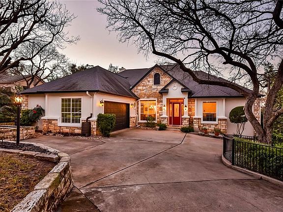 Remarkable custom built home located on Yaupon course with commanding fairway and hill country views. Special features include; Resort style pool & spa, private setting nestled under majestic oaks, wonderful sunsets, quality finishes, multiple patios and living areas, quick access to The Oaks HEB retail center, award winning Lake Travis ISD, granite counters, office, golf cart garage, Master and guest suite on main level, recent interior and exterior paint, game room, office, media and abundant storage
