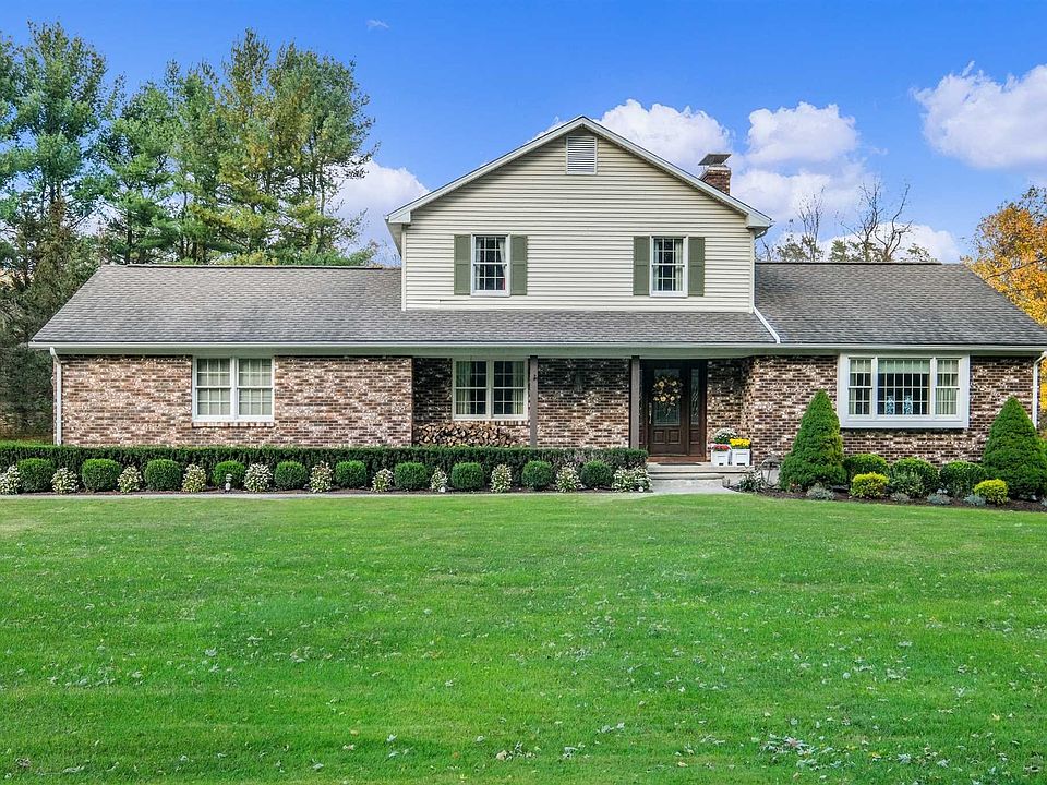 A beautifully appointed colonial placed perfectly on over 1 acre of lush landscaped land. Meticulously maintained, this home welcomes you from the moment you step through the entrance way through to its spacious deck. The large recently updated windows and sliding glass doors infuse the home with natural light adding to the appeal of this lovely space. Create decadent delights and scrumptious snacks in the generous eat in kitchen complete with chef's range, cherry wood cabinetry and large island. The formal living and dining rooms, and over sized deck with above ground heated pool make entertaining a breeze no matter the season. Escape to the oasis provided by the renovated master bedroom featuring a charming window seat, a wall of California Closets and en-suite with glass enclosed shower, granite topped vanity and gorgeously tiled floor. The amenities continue with hardwood floors throughout, large brick fireplace, accent molding, built-in shelves, renovated powder room,garden and a newer roof. Ideally located with easy access to Metro North, shopping, restaurants and Rt. 684 and 22. Don't miss the opportunity to make this home yours!