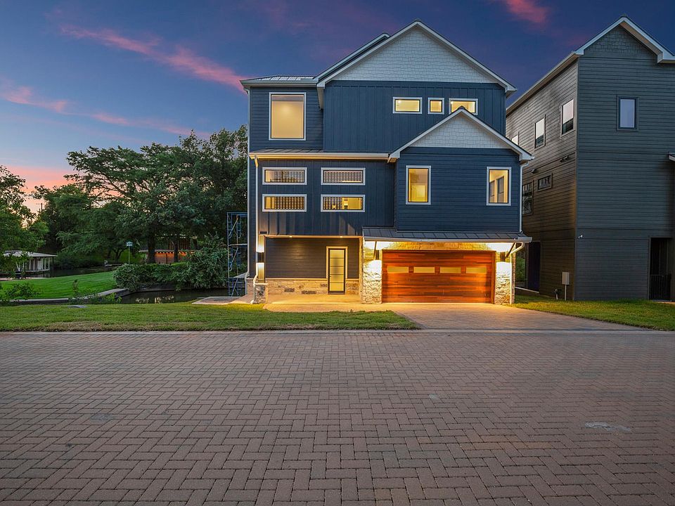 Beautifully and thoughtfully designed-this modern Craftsman styled Kingsland charmer has everything you want and need to live the ultimate lake life. Newly constructed, the open concept flows well and features 4 bedrooms and 4 and a half bathrooms. The primary suite is located on the third level along with: an additional bedroom, full bath, powder bath, laundry room, and loft space. There is a large third floor deck offering incredible views with direct access from the primary bedroom as well as to the loft. On the main level you find two bedrooms (one of which has built-in bunk beds to maximize space for guests), two full baths, the kitchen/dining, and a spacious living room. The elegant yet neutral kitchen featuring a waterfall island and breakfast bar overlooks the dining and living rooms that are warmed by neutral flooring and an abundance of natural light. The living space features patio doors that fully open for true indoor/outdoor entertaining. Designer finishes throughout add character and style at every turn. This home has been constructed with care for the buyer desiring timeless yet modern amenities. Ideally situated on a secluded cove while just moments from large open waters, the location is hard to beat. Enjoy your own private boat dock, heated cocktail pool overlooking the water, and 1694 square feet of outdoor living. This sweet opportunity of a home is perfect for the buyer looking to enjoy the good life on Lake LBJ with opportunities for STR and income available.