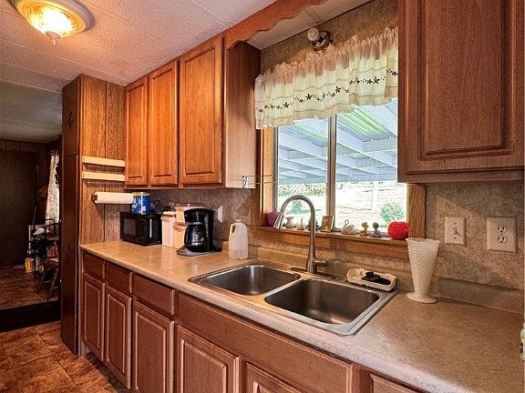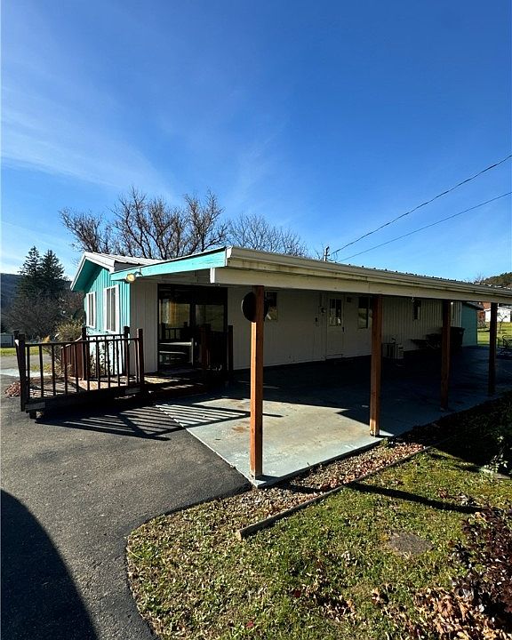 This is a very nice home on the end of the Street. The home owner has taken pride in her ownership. This doublewide home has three bedroom/full bathroom with the primary bedroom has an additional half bath. Make one bedroom your office. What a great covered concrete oversized rear carport, it runs the full length of the rear of the home to park your cars or toys. Shed on the end. Nice breakfast nook / laundry area as one enters the foyer of the home. Sliding glass doors off of the dining area to the rear covered porch with a ramp access. Large carpeted living room. Full walk out basement. Blacktop driveway. Many rotating perennials. Private setting. New water lines put in approx. 2 years ago. Preapproved buyers only.