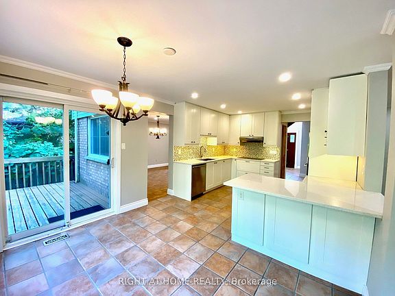 Beautiful yardRenovated eat-in kitchenWhite cabinetryQuartz countersBreakfast barDining areaDouble sinks