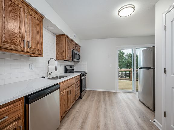 Completely renovated inside and out 2 bedroom, 1 bath apartment on the bottom floor in Tonganoxie, KS. New, flooring, paint, fixtures, appliances, and granite. In unit washer and dryer provided. Off street parking. Large back deck. Great central location. Please submit an online application prior to showing. Showings scheduled Monday-Friday. $1250 per month with matching deposit. 1 year lease required. Credit check required; minimum credit score of 600. Rental history and background check required. No pets allowed. No smoking/vaping allowed in unit.