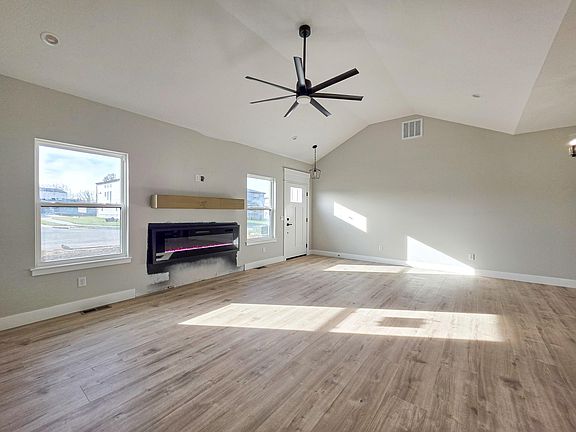 This plan offers 3 bedrooms, 2 full baths and a 2 car garge with 1384 sq ft of indoor living space and 82 ft of covered outdoor space. The modern style and plan features functional open concept living with an eat-in island kitchen with quartz counters, stainless steel appliances, upgraded kitchen cabinetry with soft close hinges. Mohawk RevWood plus flooring and tile in the laundry and bathrooms. The exterior features vertical Premium Board 'n Batten siding with brick accent, 30-year premium architectural shingles, double hung energy star rated vinyl windows, steel insulated garage door and aluminum gutters, soffits & fascia. The outdoor living is rounded out with a covered deck and sod and a sprinkler system in the front and back yard. Owner/Agent