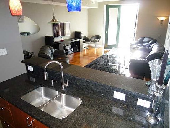 NEWLY REMODELED! Skyline view from your bed! French balcony off living room w/southern exposure. Granite kitchen + breakfast bar opens to living area w/cherry hardwood floors. Ceramic tile in kitchen + bath. New upgrades: kitchen + bathroom, high-end Samsung stainless steel appliance package, designer fixtures + backsplash, contemporary lighting. 1 block from Columbus Commons Park, courthouse, + a ton of downtown's most popular restaurants + bars. Covered + gated parking.EZ2C
