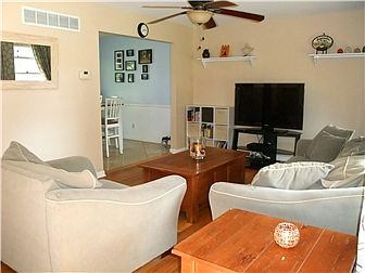 Motivated seller on this nicely updated home features HVAC, updated kitchen cabinets, stone back splash, Corian counters, tile flooring, updated bath with tile flooring and vanity. Nice hardwood in livingroom and all three bedrooms. Finished lower level for watching the game or play room. Spacious back yard is fenced nicely wooded and private. Close to shopping and school just around the corner, what could be better for your family.
