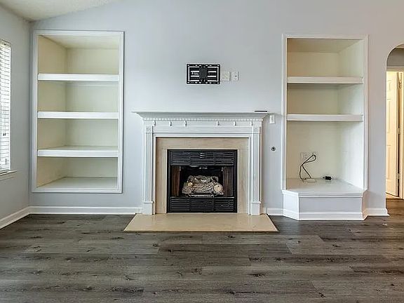 Step inside to an inviting open-concept layout with a desirable split bedroom design. The eat-in kitchen, featuring stainless steel appliances and a separate pantry, seamlessly overlooks the spacious great room. The great room is a true focal point, boasting built-in shelving on each side of a cozy gas log fireplace, perfect for relaxing evenings. For more formal gatherings, you'll appreciate the separate dining area.