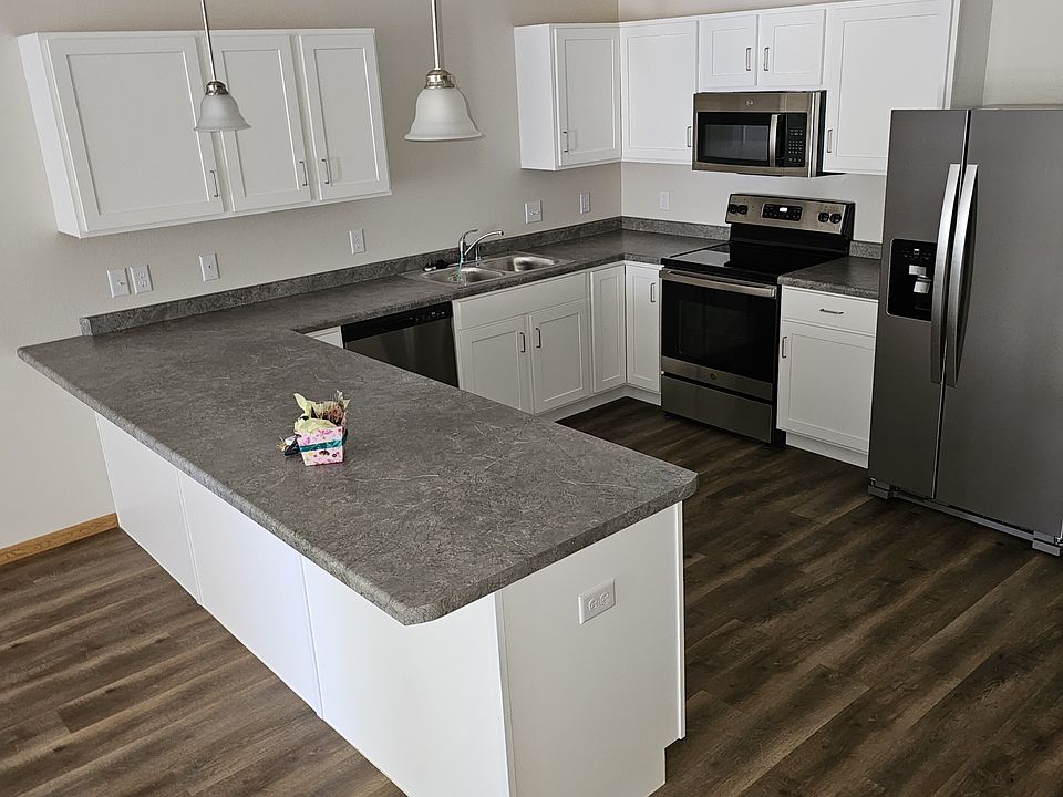 Beautiful, spacious and quiet. Welcome to Fox Valley Townhomes. This development features 2 single story buildings configured in 4 units. No neighbors above or below you! Each unit features over 1200 square feet, 2 bedrooms, 2 full bathrooms, all stainless appliances (including microwave), full size washer and dryer, laminate flooring, in floor heating, attached garage, private entrance, patio, and an open floor plan concept. Included in the rent is gas (heat), water and sewer. All you pay for is electric. This is an inner unit. **Built in 2024** Welcome to Fox Valley Townhomes, where spacious and serene living awaits you. This development features two single-story buildings, each with four units, ensuring that you have no neighbors above or below you! Each unit offers over 1,200 square feet of living space and includes: - 2 bedrooms - 2 full bathrooms - All stainless steel appliances (including a microwave) - Full-size washer and dryer - Laminate flooring - In-floor heating - An attached garage - A private entrance - A patio - An open floor plan concept The rent includes gas (for heating), water, sewer, snow removal, and lawn maintenance. The only utility you are responsible for is electricity. Experience the comfort and convenience of Fox Valley Townhomes! **We welcome up to two pets, subject to an extra security deposit of $500.00 per pet and a monthly pet fee of $25.00. Additional garage units are also available for rent.**
