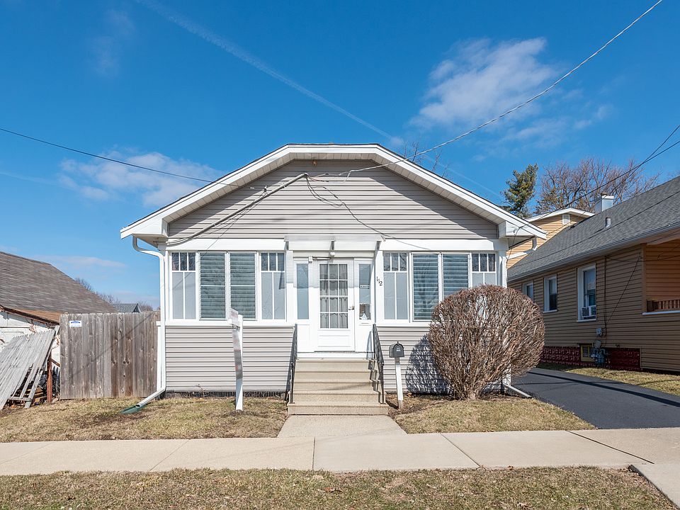 Charming home! 1 floor living with full basement! Inviting 23' enclosed porch with tons of windows to enjoy the sun and breeze. Living/dining room has carpeting, lighted ceiling fan and large windows with blinds. Bedroom 1 features carpeting, ceiling fan and window binds, with direct access to updated bath (with NEW, easy-care wood laminate flooring (2023) and NEWer sink (2018)). Bedroom 2 has NEW wood laminate flooring (2023), overhead fan/light, window blinds and direct bath access! Updated kitchen features tons of cabinets, gas stove, window treatments, wood laminate floors and access to outside. Large unfinished basement, accessed through interior staircase, ready for your finishing ideas, has 1/2 bath and laundry area. Asphalt driveway (2019) leads to 1-car detached garage (NEW garage door!). Fully-fenced backyard. NEWer roof (2018) with gutter guards (2020), NEWer siding (2018), NEW furnace and AC (2019); NEW windows, wells and covers (2021); NEW storm doors (2020) Terrific location! Don't miss this one!