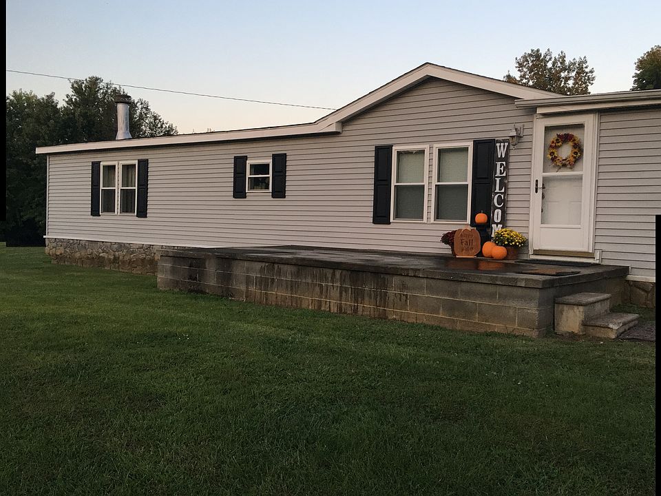 Gray vinyl siding with black shutters White vinyl windows that tilt in to clean Front door patio Back door deck Open living/dining Large kitchen with island Den (easily convert to 4th bedroom) Utility room ALL appliances including washer & dryer stay with house Central heat/air Quiet dead end street Easy access to atv trails City conveniences in a country setting Pond stocked with bluegill for fun family fishing Wooden Swing Set stays with house