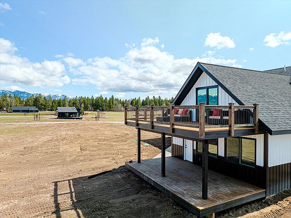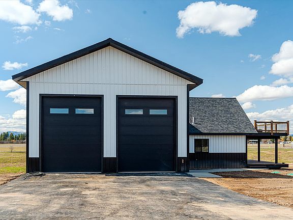 MOTIVATED SELLER! Seller Financing with 50% down. New Custom Barndominium on 2.57 Acres – Nightly/Weekly Rental OK. Welcome to this stunning newly built 3-bed, 2.5-bath barndominium offering breathtaking views of Glacier National Park and the Swan Mountain Range. Light covenants allow two dwellings per lot. Build a second home, rental unit, and/or a shop along Helena Flats Road for your business. The additional 252 sq. ft. of finished garage space can be walled off with a door and is perfect for a game room, theater, or creative workspace. 1,500 sq. ft. of finished, heated garage space with 16’ ceilings and two oversized 11’x14’ doors is ideal for storing recreational vehicles, running a home business, or future expansion. Panoramic mountain views from the private upper deck off the master suite or lower deck off the main living area. Be sure to watch the Video! Melinda Morton @ 406-260-0472 or your Real Estate Professional for more information or to book a showing. This quality built Barndominium has a 30x50 (1500sq.ft.) Shop/Garage and with an attached 1300sq.ft. home, it is perfectly designed for both luxury living and functional use, this property is an ideal investment, business opportunity, or private retreat. Centrally located – 5 minutes to downtown Kalispell, 15 minutes to Whitefish, and 35 minutes to Glacier National Park. Enjoy nearby Flathead River and Flathead Lake access, and two top ski resorts (Whitefish & Blacktail Mountain) within 45 minutes. Spring Landscaping Included: A 3-rail wooden fence on two sides, a cement walkway to front door and professional landscaping to be completed in the spring as weather permits.This is a rare opportunity to own a high-quality, custom barndominium in Montana’s sought-after Flathead Valley—offering luxury, flexibility, and investment potential all in one. Builder is available to enclose the additional space in garage for an additional cost. Modular, manufactured, container homes and kit homes are allowed per covenants. Outdoor hot and cold water spickets are located outside of garage at driveway.