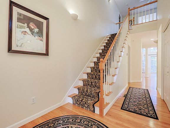 Welcome home to this beautifully appointed townhouse in the highly sought-after Great Brook 55+ community. Step inside to discover an inviting open floor plan featuring a bright eat-in kitchen with white cabinetry and a charming breakfast nook. Hardwood floors flow seamlessly throughout the main living areas, leading to a generous dining and living room accented by soaring vaulted ceilings, elegant columns, and a cozy gas fireplace—perfect for relaxing and entertaining. An oversized slider and expansive windows bathe the first floor in natural light. The first-floor primary suite offers dual closets and a private en-suite bath for comfort and convenience. Upstairs, you’ll find a versatile loft area, guest bedroom, full bath, and bonus area currently used as a large walk-in closet. A full basement provides abundant storage. Enjoy all that Great Brook has to offer, including scenic walking trails, a welcoming clubhouse, community garden, and an active calendar of social events.