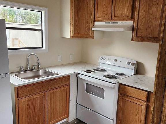 New carpet in bedrooms. New vinyl flooring in living room and kitchen. New kitchen. Refrigerator and stove provided.