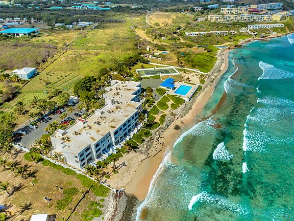 Do you dream of stepping from your condo directly onto the sand while gazing at the azure Caribbean Sea? This could be the condo of your dreams! You'll see Buck Island, the neighboring islands, & countless shades of beautiful blue! Drift to sleep with the peaceful sounds of the waves. This lovely 2 bedroom 2 bathroom condo is an established vacation rental, & features new accordion shutters on the sliders, an enclosed gallery, & a sunny seaside patio. Central AC gives a touch of luxury. The complex has a diesel generator. This end unit is closest to the large pool with a pool deck, common area & coin op laundry. Access is either by a short staircase, or from parking lot, around the building on a paved walkway to the patio with just one step up. Small pets allowed, board approved.