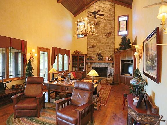 Fabulous lake view masterpiece located in an ideal Branson location! Branson School District! Quality built home with no expense spared overlooking the Ozark Mountains and sparkling Table Rock Lake. Design inspired by a fusion of lodge and craftsman influences with upscale finishes including wide-plank pine floors, luxurious textiles, finest quality appliances and accents. 7244SqFt, 5 Bedrooms, and 6 Baths with multiple living areas inside and out - decks, patios, and balconies - to enjoy the peace and beauty of the Ozarks. The neighborhood, tucked away behind a stately gated entrance, features similar quality upscale homes, all a stone's throw from everything Branson has to offer. Boat slips available to purchase, or choose from one of the top-flight marinas nearby.
