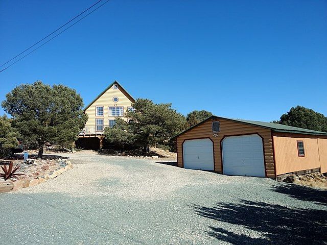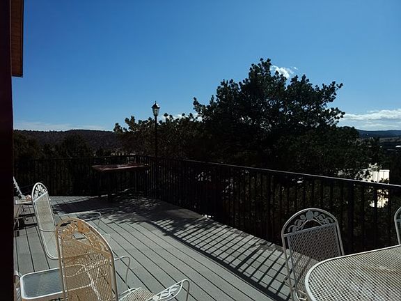 Great SB views and surrounding mountain views in this charming log sided home perched on a hillside. It has a large family room filled with light from the many windows. Two bedrooms and a bath downstairs and the master bedroom and bath are upstairs. There is also an office area upstairs. An open design in kitchen, dining and living room downstairs is very inviting with lots of windows and views. Two free standing gas stoves one in living room and one in the family room give you the warmth and ambiance of a wood burning stove without the mess. Large deck that needs some repairs. Outside is a double garage with a large workshop attached. Lots of parking. Room for your RV too.