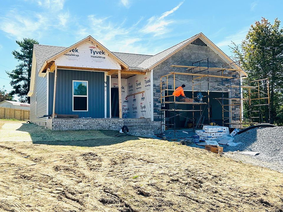This stylish bungalow is estimated to be completed by November 1st and is located in London's Silver Hawk Subdivision just off Hwy W80/Russell Dyche Pkwy with east access to London, Corbin, Manchester & Somerset and within 2 miles of Wood Creek Lake. This open concept, one level new construction has low maintenance exterior vinyl & stone and situated on a level, easily maintained .34 acre lot. Enter by the covered entry way into a separate interior entry which opens to a 12.8X20 great room looking into the 12X25 combination kitchen/dining area. The kitchen of white cabinetry offers all stainless appliances, granite countertops and breakfast bar with access to the covered rear 12X12 covered patio. A generously sized primary bedroom suite is located at the rear side of the home with an ensuite including double vanity, walk-in closet & large tiled shower. Additionally, two guest bedrooms, 11X11 & 11X12, with guest full bath. No carpet, Luxury Vinyl Plank flooring throughout & all hard surfaced counters. There is a 21X21 attached garage, concrete drive & public sewer! Located off W80/Russell Dyche Pkwy, near Wood Creek Lake, Walmart DC, Industrial Park, Daniel Boone Nat'l Forest & all conveniences! You can be in this home for the holiday!