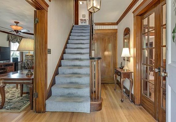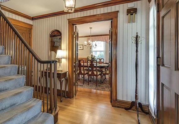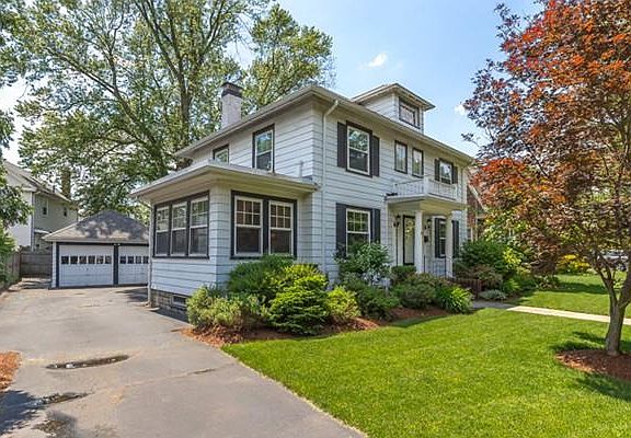 Hurry!!! Brooks Estate area!! Center Entrance Colonial has the feel of yesterday and many conveniences of today! Huge front to back living room has hardwood floors, fireplace, bookcases, wainscoting, 4 season sun room has hardwood and lots of sunlight, dining room with hardwood floors, renovated cherry cabinet has silestone countertop, SS applainces, recessed lights, dining area and tile floor with access to rear yard. 2nd level has 3 generous bedrooms all with carpet and good amount of closet space. Renovated full bath with tile floor completes this level. Walk up attic offers potential for expansion. Basement has half bath and also offers additional expansion space. Young heating system and updated electric panel. Rear yard is gorgeous and offers paver patio, lush landscaping, fenced yard, 2 car garage and parking for 4-5 addi
