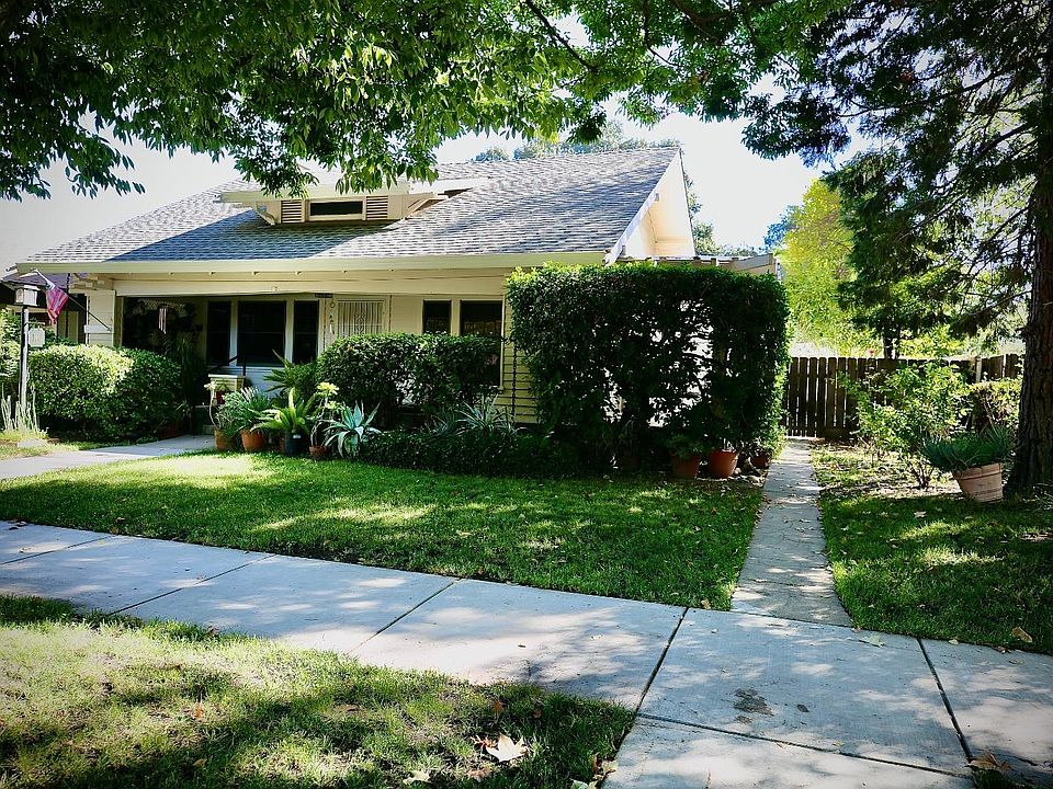 Located in the College area, this Craftsman Style was built in 1910 with 2+ Bedrooms, 2 Baths. (There is an Office & Sitting room that could be additional bedrooms.). The home has 1792 s.f. & sits on almost 1/4 acre lot. As you walk up & enter the home from the wrap around front porch you can see the wonderful craftsman touches. The great room has lots of windows, a wood-burning fireplace, & hardwood flooring. The formal dining room has a wall cabinet, shelving & French doors that lead to another sitting area. The remodeled kitchen has been updated with new cabinets, stainless steel appliances, granite counters & has indoor access to the basement. The yard offers lush landscape, fruit trees, a rose garden & 2 Tuff sheds. Newer HVAC, & tankless water heater, washer, dryer & refrigerator all included. Close to downtown, Graceada Park, Modesto Junior College & the Virginia Corridor. Come see this one today!