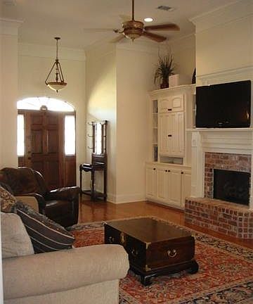 Southern charm abounds in this beautiful all brick 3bedroom/2bath home plus huge sunroom in sought after Hartfield. So much curb appeal with brick pavers under foot on the deep front porch, that runs the length of the front of the house. With it's soaring ceilings, neutral colors, and intelligent layout, this home does not disappoint. The family room is spacious with beautiful wood flooring, a gas fireplace, built-ins for extra storage, and sight lines into the dining room, kitchen, and sunroom. Sleek stainless appliances, gorgeous custom millwork, attractive slab granite countertops, a gas cooktop, under cabinet lighting, and tons of storage make the kitchen a cook's dream. Enjoy entertaining around the table in the sunny breakfast room with it's charming stained bead board ceiling, or take the gathering into the large formal dining room with built in china cabinet. The lovely wood floors continue throughout the huge sunroom, that could be used as a playroom, office, or additional sitting area. A split plan allows for privacy in the master suite, as well as the guest wing of the home. The master bedroom features a tray ceiling, plenty of natural light, and an en suite bath that is generous and relaxing, with his/hers vanities, a deep Jacuzzi tub, separate shower, private toilet room, and a very large walk in closet. The well appointed guest rooms are also nicely sized with great closet space. The lovely guest bath can be accessed off of the hallway between the two guest rooms. In the backyard, enjoy watching the kids play on the swingset from your slate back patio, or relax by the fountain with your morning coffee. Home owners in Hartfield enjoy access to the neighborhood pool with views of the lake. Zoned for Mannsdale Elementary, Germantown Middle/High - some of the state's top rated public schools. Don't miss this opportunity! Call for your personal showing today!