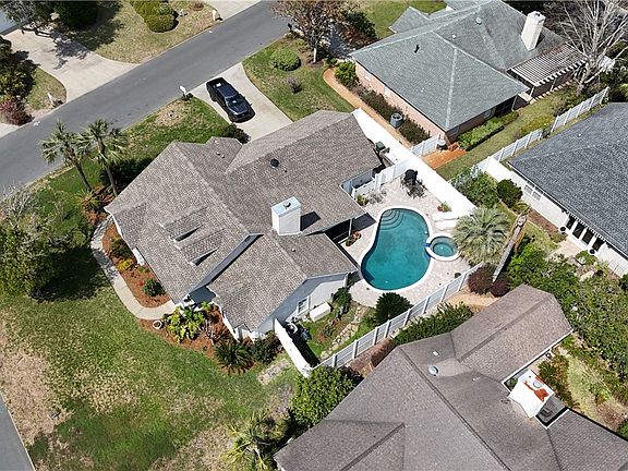 FYI, the current contract has a Sale Contingency with a 72-hour kick-out clause: Charming One-Level Home with Private Pool Oasis features a low-maintenance tabby exterior home, designed for easy living. The stunning heated pool, complete with a spa, creates a true backyard retreat that is fully fenced for privacy and complemented by a screened porch for year-round enjoyment. Inside, the eat-in kitchen boasts a large pantry, breakfast bar, and ample cabinetry & countertop space, flowing seamlessly into the open living area. The split-bedroom floor plan offers ideal functionality, featuring a vaulted-ceiling primary suite with a walk-in closet, a jetted tub, and double vanities. Also, on the main level are the spacious secondary bedrooms, which share a tub/shower combination bathroom. While the original bathrooms provide a chance for personalization, the home has been gently lived in, making it a perfect canvas for your style. Upstairs is a U-shaped bonus area that the sellers use one area as a den and the other as an office and large storage area (be sure to walk around the entire space to get a full view). Additional highlights include a two-car garage, oversized laundry room, plantation shutters throughout, wood & tile flooring throughout, and extra storage closets. Recent updates include a four-year-old roof, a new irrigation pump for the shallow well, and new irrigation zones. This home is move-in ready with endless potential—schedule your tour today and make it yours! HOA dues are $200 annually and nightly/weekly rentals are not permitted.