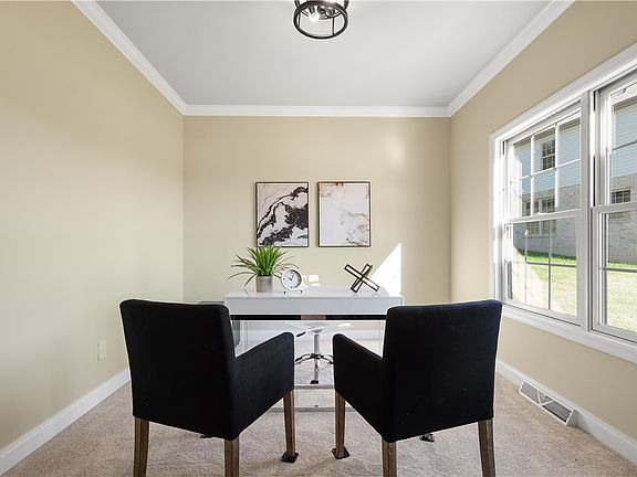 Input Crossroads Church of Christ into GPS to location in Peters Twp. newest Premier Community Lutz Farm offering countryside views. Cul-de sac location. Two story foyer welcomes you. A private office with glazed glass door, spacious dining room, open family room to custom white kitchen with coffee bar and two tone center island. Stainless appliances 9 ft. ceilings and gracious living areas. Four spacious bedrooms with 3 full baths on second floor. Dynamic primary bath with closets and storage galore. Optional dressing room or easy access storage. The oversized shower and double granite counters sets a relaxing atmosphere. A private en-suite and Jack and Jill bath will accommodate all your families needs. Plus easy access pull down attic stairs. Large laundry on first floor with guest closet and finished game room with powder room that extends your living and entertaining areas. Two additional 16x17 and 10x7 areas in game room . One screen per room is alotted.