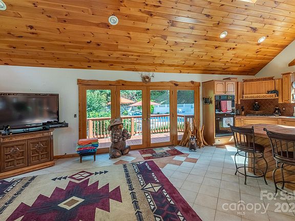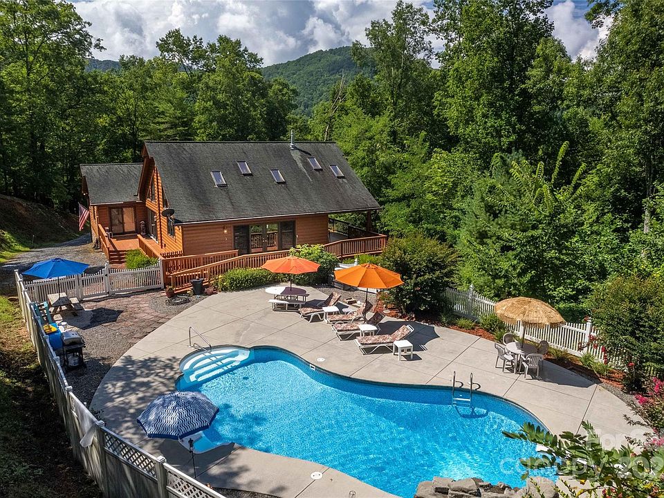 Are you ready for your dreams to come true in the NC Mountains? Come see this traditional custom stick built home with log siding with double attached large garage and workshop. T & G vaulted cathedral ceilings with roof lines through to the covered back porch and partial wrap around deck to relax on those cool evenings. The house has been newly painted and stained on the outside. Step into a large comfortable great room with ceramic tile flooring and hand laid cultured stone fireplace and accent wall. Kitchen features large island with storage and wine fridge, double electric ovens for baking, commercial gas range with vent hood. All upgraded appliances with custom cabinetry. Enjoy main level living and also a large living space/game room below. Dive in the private heated pool, sit under the waterfall on those hot summer days. If interested, there is an additional 7.5 acres of "unrestricted" land which features riverfront pasture for horses/fishing on the Caney Fork Creek. Along with with room for multiple future build sites if desired. Ask for more information! Don't miss this opportunity to get a home full of craftsmanship and live in this mountain paradise!