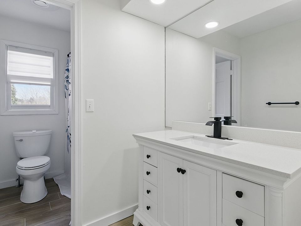 Bathrooms fully updated with new vanities, toilets, and accessories.