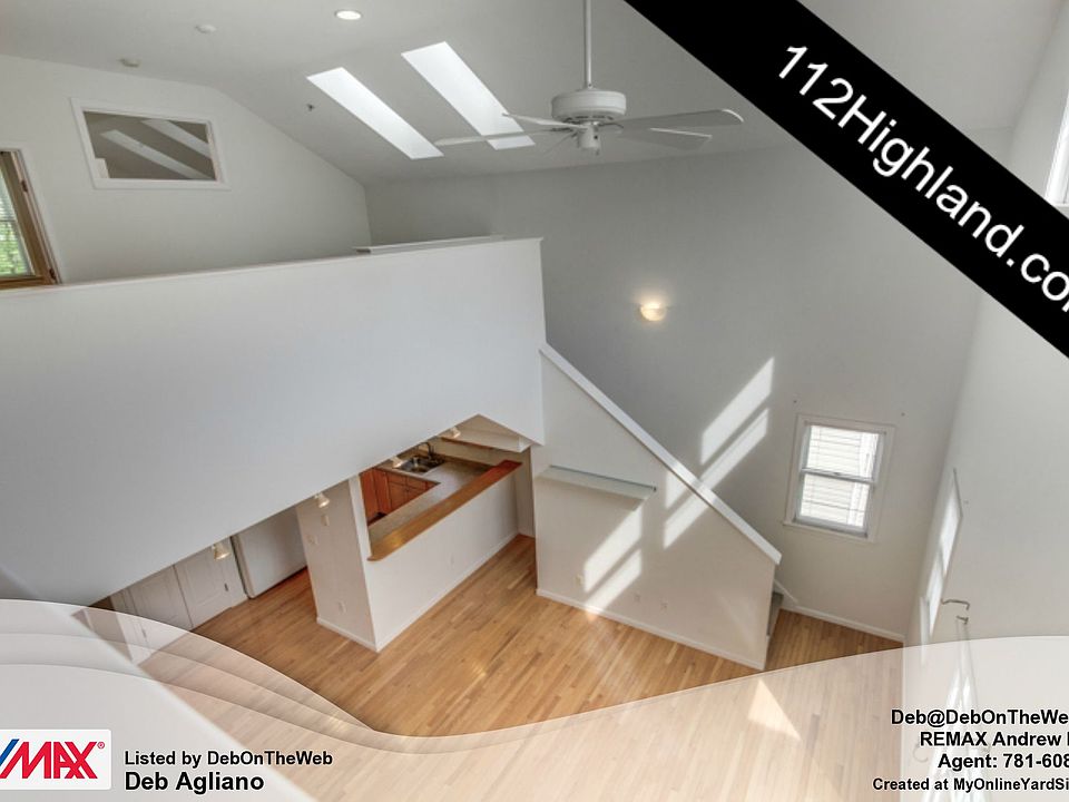 Video & interactive floor plan at www.112Highland.com. Your friends will be envious of your dramatic 2 bedroom 2 bath 2 story loft condo. South facing windows bring in the sun to this lovely end unit condo. Gleaming hardwood floors flow through the open 1st floor living area. Skylights light your way as you walk upstairs. How will you use the loft space? Use the interactive floor plans online to play around with furniture arrangements without having to lift anything. The MBR has a walk in closet and private bath. Imagine entertaining friends on your deck with great Boston views once the leaves have fallen. 2 deeded parking spaces (1 covered). Central air. HVAC and hot water tank new in 2012. You'll be living just a little over a mile to Davis Square, Porter Square or Inman Square & less than a mile to Union Square or catch one of the many close buses. Don't feel like cooking? Enjoy dinner at Highland Kitchen or one of the nearby restaurants. You'll be living down the street from all of the events at the Center for Arts at the Armory including the Somerville Winter Farmers Market.