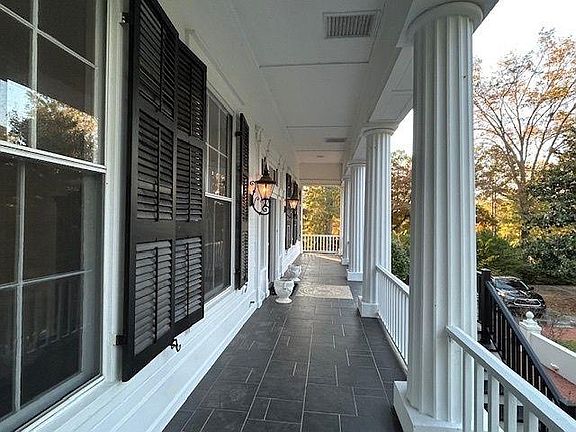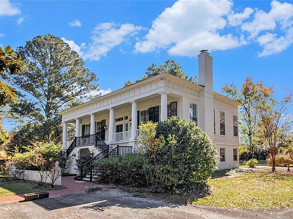 Be Home for the New Year in This Grand 4-Bedroom, 3-Bath Stately Home! Home was built in 1850, but moved to current location in 1968. Updated in 2020. Step into elegance as you enter the welcoming foyer that separates the formal dining, formal living room, providing the perfect flow for entertaining. The main level features a serene primary bedroom suite with an attached bath, plus a spacious kitchen and a versatile storage area that can serve as a laundry room or butler's pantry.Descend to the lower level, where you will find three additional bedrooms and two baths including 1 BR with ensuite allowing a primary on the lower level. One of the secondary bedrooms features a cozy fireplace. This lower level area boasts a separate entrance, a cozy family room, and a convenient laundry closet, adding flexibility to your living space. The family room's bookcase area also functions as a versatile wet bar/kitchenette area that includes sink, microwave and mini refrigerator in the family. The main level showcases beautiful hardwood floors, while the lower level features charming brick flooring, wood and carpet. This home could easily function as a multi generational living home.There are 6 outside storage units that offer additional storage. Updates in home done in 2020 that include new HVAC, water heater, appliances, exterior and interior paint. New roof installed in 2023, stucco redone in 2023, Some electrical rewiring and installation/replacements of receptacles done in 2023. Efficient attic insulation (including pest repellant) installed in 2024 - warranty transferrable. Annual termite bond. One year home warranty for new buyer. This historic home, built in 1850, has been lovingly preserved and beautifully updated, including a new roof installed in 2023. The backyard is spacious with room for gardening or other projects. There is long driveway and parking for 5 automobiles. Originally built in 1850, the home was moved in 1968 to Booker Hills Subdivision from the Potts Plantation. The romantic architecture features stunning Doric columns and a raised cottage-style second story, creating a splendid temple design.Don't miss your chance to own this unique piece of history, meticulously maintained by its current owner. Seller offering 1 year home warranty.