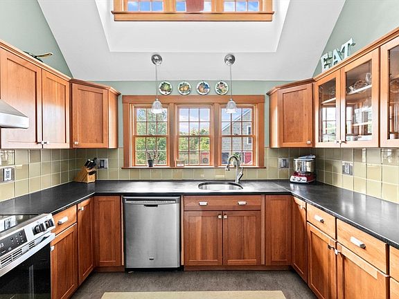 Charming 4 bedroom, 2.5 bath Greek Revival blends historic character with modern comfort on a beautiful lot less than 2 miles from Minot Beach (with sidewalks!). A paver drive leads to a gorgeous barn, perfect for studio, workshop or storage. Inside a welcoming chef’s kitchen with stainless appliances, granite countertops, built-in breakfast nook and heated floors create a warm and inviting space. The spacious family room opens to screened porch, offering a peaceful spot to unwind. Sitting room with woodburning stove and a dining room with a decorative fireplace add to home's cozy appeal. 3 bedrooms fill the 2nd floor, while the third-floor walk-up offer a flexible space for a 4th bedroom, playroom, or office. With a patio, outdoor shower, and fire pit, expansive yard, and first floor laundry, this home offers both charm and convenience - just minutes from Scituate Harbor, beaches, the commuter rail, shoppes and more