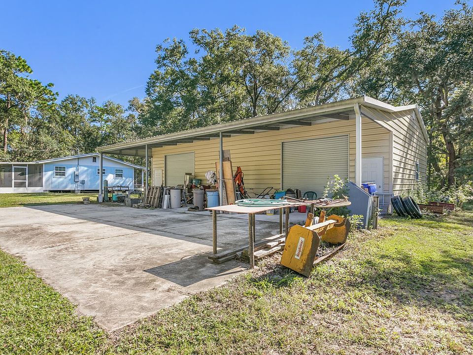 Opportunity meets flexibility at 112 Holly Drive in Florahome, Florida. This three-bedroom, one-bath cottage is being sold together with the adjacent parcel—offering buyers a rare chance to own a double lot approximately one-half acre. The home features 1,008 square feet of living space, central air and heat, a metal roof, and screened porches at both the front and rear—ideal for enjoying quiet evenings under the trees. The standout feature is the nearly new 30x50 insulated metal building located on the adjacent lot and included in the listed price. Equipped with commercial lighting, two roll-up doors, and two entry doors, this versatile structure is perfect for entrepreneurs, creatives, or gear-heavy hobbyists. Whether you're launching a home-based business, storing boats or RVs, or building out a workshop or studio, this setup delivers space, privacy, and potential—all just steps from your front door. The building also includes its own separate well. Zoned R-1A and located minutes from Georges Lake, the property offers a peaceful setting with room to grow. This is an opportunity for buyers seeking a live/work lifestyle, investment flexibility, or a private retreat with expansion potential. Additional lots are available directly behind this offering for an additional cost. Buyer to verify all information and confirm with Putnam County that the zoning requirements align with the goals of the next owners.