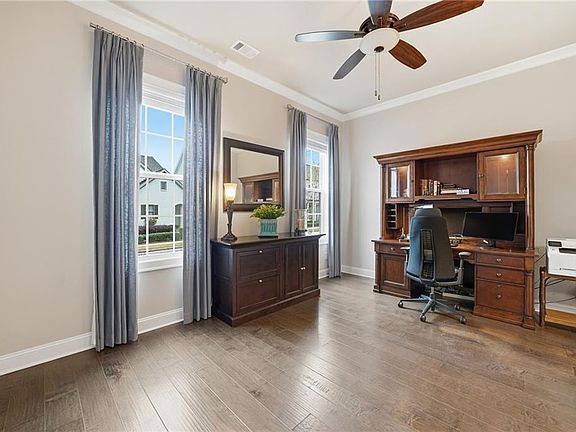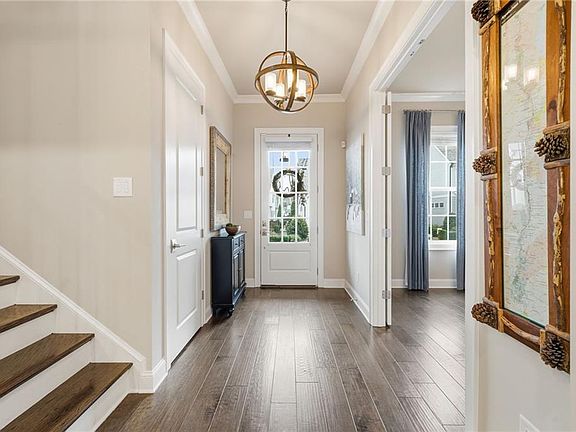 Luxury and lifestyle converge in this stunning Providence Group home located in the highly sought-after Idylwilde community. Perfectly positioned, this residence showcases nearly $80,000 in upgrades designed to enhance comfort, function, and style. Step inside to discover designer finishes and thoughtful enhancements throughout, including custom lighting, custom wooden blinds and a state-of-the-art Lutron lighting control system with dimmers, fan controls, and motion sensors. The open-concept living area flows seamlessly to the chef’s kitchen, where you’ll find upgraded cabinetry with pull-outs, spice racks, soft-close slides, and a hidden waste basket system — all complemented by elegant countertops and a spacious island for entertaining. The primary suite offers a luxurious retreat with an expanded walk-in closet by Closet by Design, additional lighting, and premium fixtures and zero entry shower. Upstairs offers two bedrooms with dual entry bath and flex space/ media room include upgraded ceiling fans and added electrical/lighting for optimal comfort and huge walk-in attic storage. Outdoor living is equally impressive. Enjoy your extended patio with brick and concrete finishes, custom landscaping, and a retractable awning for year-round enjoyment. A Ring security system with multiple cameras and Nest thermostats provide smart-home convenience, while the rear entry 2 car garage features additional lighting for functionality. Even the smallest details were considered — from a custom mudroom bench with cushion to an exterior trash can enclosure for tidy curb appeal. Located in gated Idylwilde, one of Cherokee’s most desirable communities with pool, clubhouse, pickleball, and walking trails!