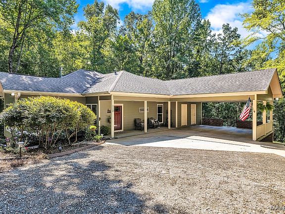 Welcome to this beautifully remodeled 3-bedroom home tucked away in the highly desired Indian Hills area of Wetumpka, AL. Just minutes from the charm and dining of downtown Wetumpka, this property offers the perfect blend of convenience and quiet retreat. As you drive through the rock gate, you’ll immediately feel the privacy of the large wooded lot. Step inside from the carport into an open, light-filled space with serene forest views. A cozy reading nook/game area sits to one side, while the family room—anchored by a stunning see-through double-sided gas fireplace—offers plenty of room for a sectional sofa and more. The open kitchen and dining areas access both the family room and the woods, creating an easy flow for entertaining. With sleek black stainless steel appliances, granite countertops, and a spacious island with seating, this kitchen is both stylish and functional. Step outside to nearly 40 feet of deck space, ideal for gatherings or for simply enjoying the soothing sounds of the spring-fed creek below. The master suite, located on the main level, feels like a true retreat with its luxurious bathroom featuring a tile shower, granite vanity, and double closets. A private screened porch off the bedroom is the perfect spot for morning coffee or peaceful evenings. Also on this level are a half bath and an oversized laundry room with excellent storage. Downstairs, you’ll find two additional bedrooms, a full bath, a study/craft room, a safe room, and a large great room that opens to the lower patio. Outdoor living is at its finest here—follow the patio to a gazebo, a cozy courtyard, or take the carved steps down to the walking trail along the creek, ending at the firepit. With multiple spaces to gather indoors and out, this home offers both privacy and connection—making it a rare find just minutes from downtown Wetumpka. This house was completely remodeled in 2011. HVAC 2011, tankless water heater 2011.