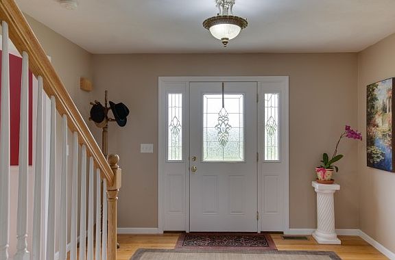 Wonderful country estate with mountain views. 8.2 acres of lawn, fields, woods and pasture and a lovingly cared for newer Colonial home to boot. Hardwood floors grace the LR, DR, hallway and Fr. Light and bright Kitchen w/island is open to the FR with gas fpl. Sliders from the Kitchen lead to a 12x12 deck and large patio. Upstairs there are 4BRs and an office. Master has a tray ceiling with ceiling fan and its own bath. There is a finished room, roughly 11x12, in the basement, along with a great work-out space. Outside there are two out buildings and a firepit. Perfect horse property or just a place to relax and enjoy the tranquility of country life just minutes to town.